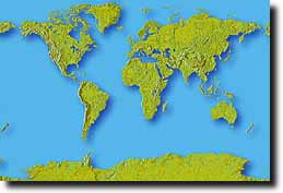 The map collection images are high resolution 300 dpi, 24-bit RGB color, and are typically sized at 2569 x 1726 pixels in horizontal and vertical axis giving file sizes of approximately 12.7 Mbytes in RGB or 17 Mbytes ifconverted to CMYK. The images are compressed using highest quality JPEG to a file size of 0.5 to 3 Mbytes on disc, and decompress transparently into most applications. Image resolution is optimized to support high quality output at full-page size. For a full specification of the #604 World map image used in the EarthShots series, check our Map Catalog specification and parameter page.