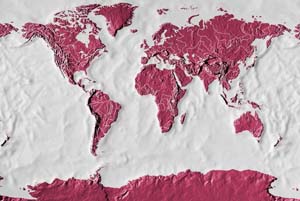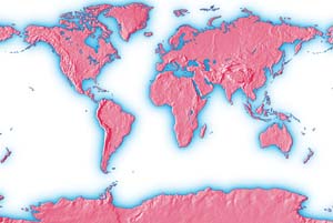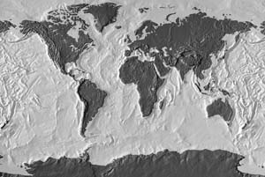 Dark gray continents - light gray ocean