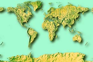 Yellow green continents - bright blue ocean