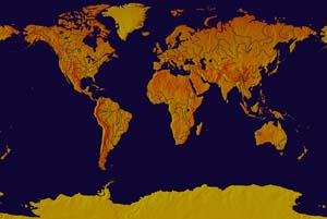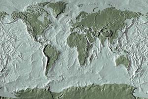 Drab olive continents - dark blue ocean