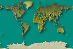 Fern green continents - deep saphire ocean