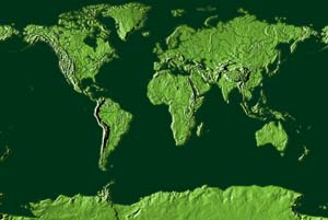 Pine green continents - blue gray ocean
