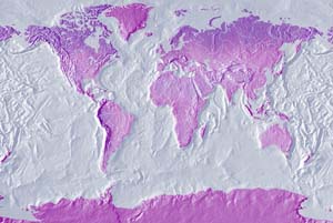 Pastel shades of blue:purple land - light blue ocean