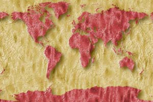 Venetian red continents - pale lilac ocean