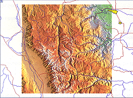 U.S. Digital Topography for GIS provides a set of full color, shaded relief maps which can be imported into and geo-referenced in GIS software such as Environmental Sytems Research Institute's ArcView and ARC/INFO. These raster maps constitute a highly detailed topographic base over which vector data features such as streams, roads, etc. can be overlayed. The map images in this collection have been computed from a 6 arc second subset of the USGS 3 arc second, gridded elevation database.