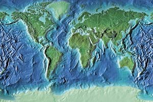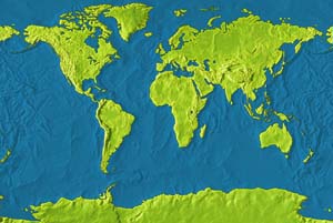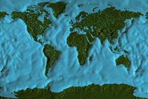 Fern green continents - deep saphire ocean