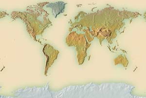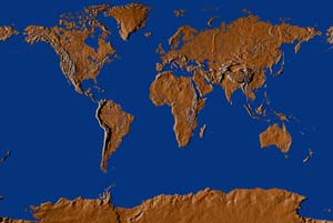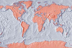 Khaki continents - steel blue ocean