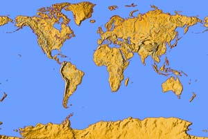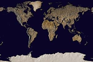 Drab olive continents - dark blue ocean